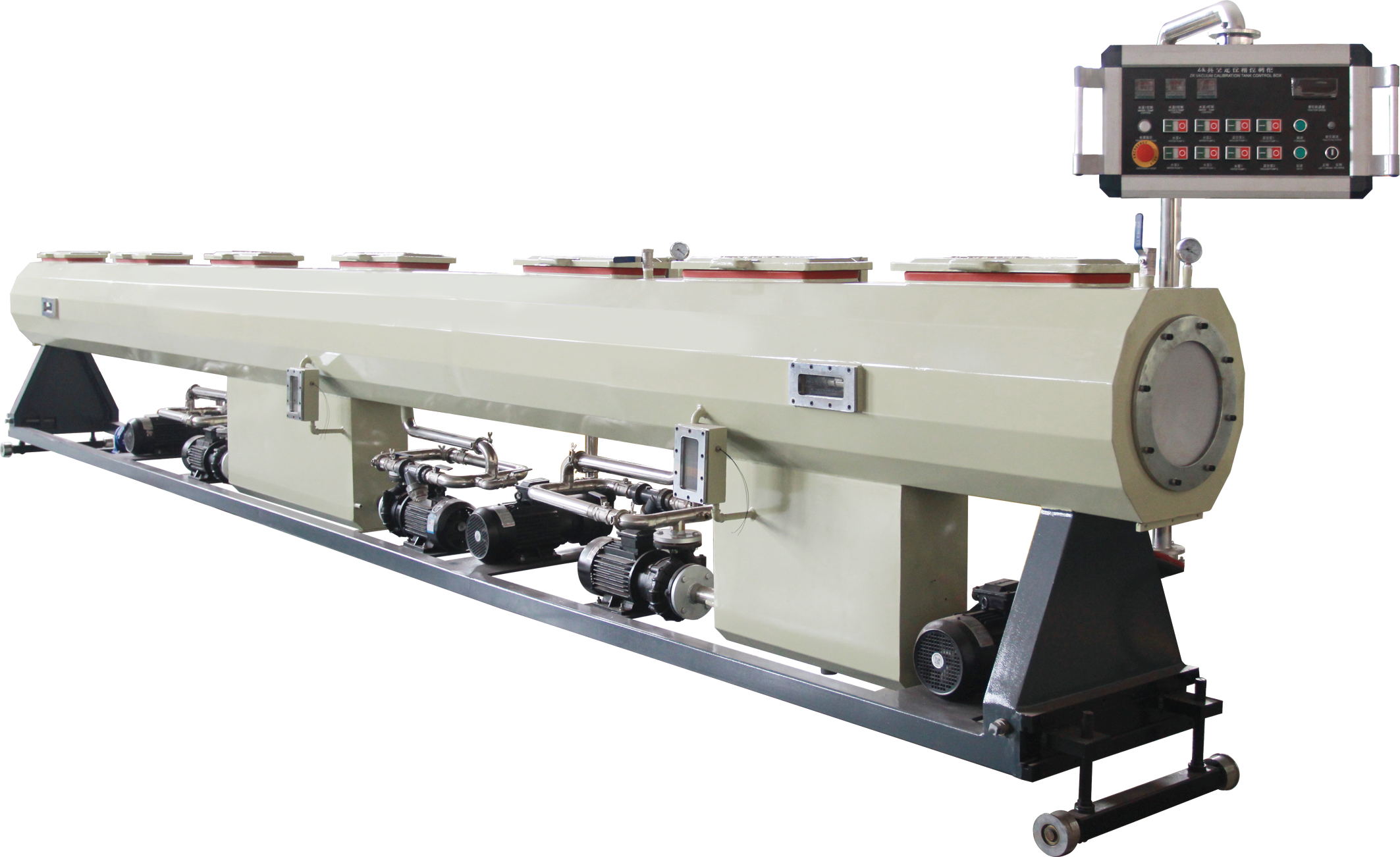 PE系列塑料管材生產(chǎn)線主要用于生產(chǎn)農(nóng)用,建筑排水排污等方面。該機(jī)組由真空定徑箱、牽引機(jī)、切割機(jī)、翻料架等組成。單螺桿擠出機(jī)及牽引機(jī)采用進(jìn)口交流變頻調(diào)速裝置,真空泵及牽引電機(jī)均采用優(yōu)良產(chǎn)品。